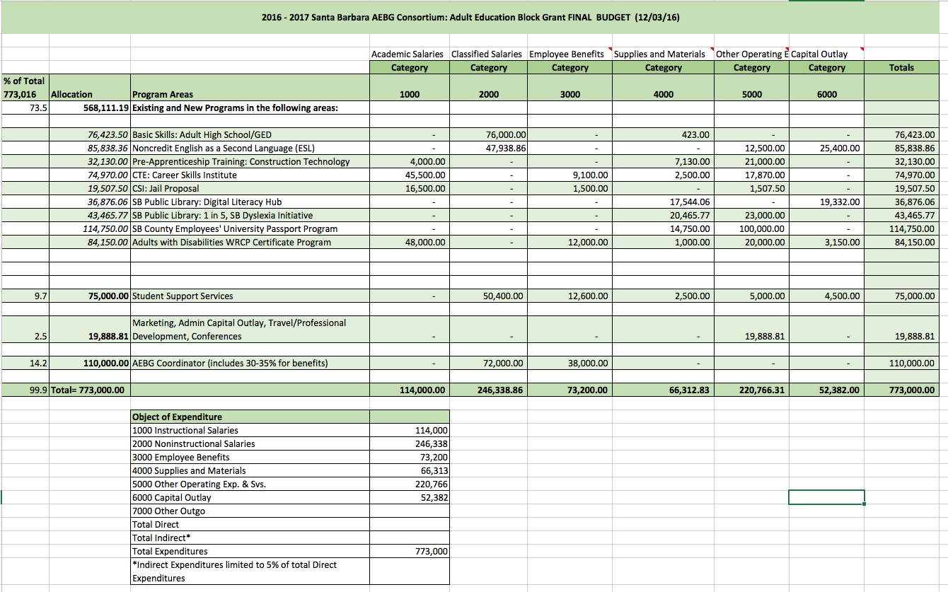 - 2016 - 2017 AEBG Request for Proposals + Activity Charts